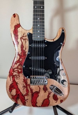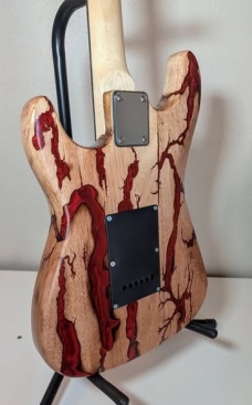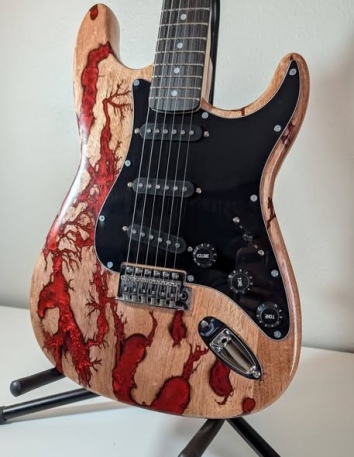 Meet "Luci" (#6) This red 'n black mahogany lady is sure to catch everyone's eye. Fractal burned and inlayed with a stunning red epoxy, black components, and a gloss finish-She's metal AF!